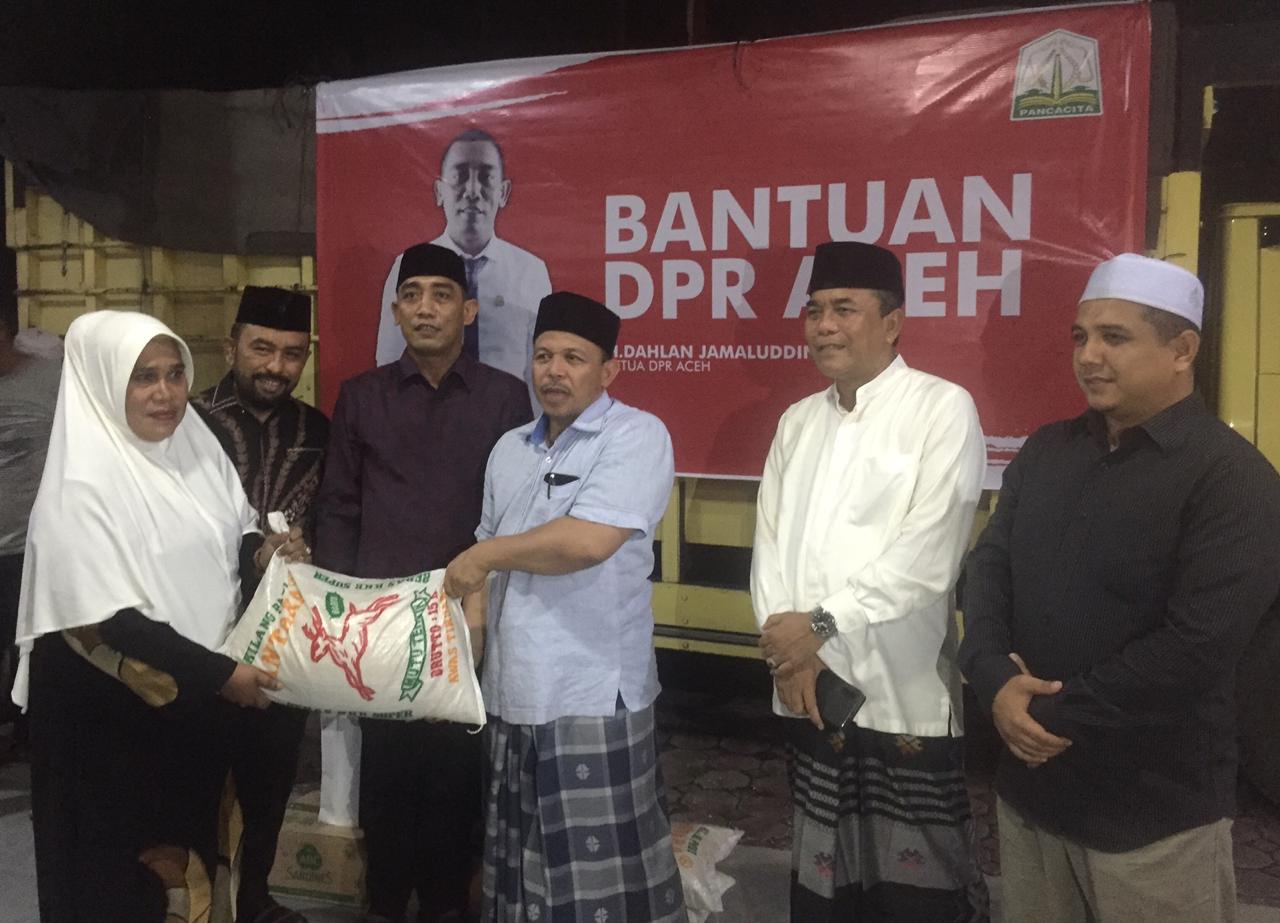 Analisaaceh.com, Meureudu | Ketua Dewan Perwakilan Rakyat Aceh (DPRA) Dahlan Jamaluddin. S.IP menyerahkan sejumlah bantuan kepada masyarakat terdampak banjir di Kabupaten Pidie Jaya, Meureudu, Selasa (12/05/2020) malam.