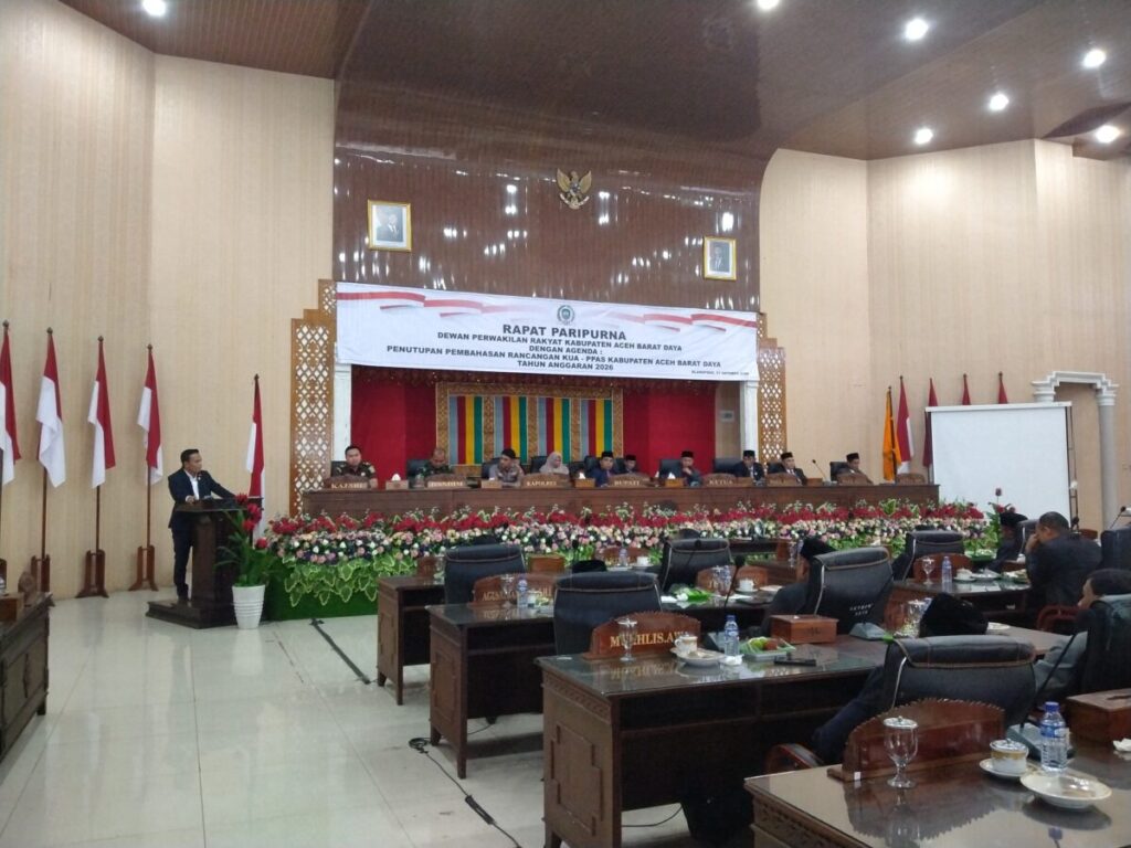 Rapat Paripurna tersebut beragendakan penutupan pembahasan rancangan KUA-PPAS kabupaten Abdya tahun 2026.