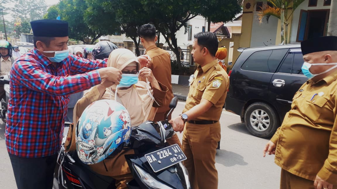 Pembagian masker itu merupakan tindakan untuk mengurangi dampak kabut asap yang telah menyelimuti Negeri berhawa sejuk dari Kebakaran Hutan dan Lahan (Karhutla) yang ada di duga kirimam dari Riau dan Jambi.