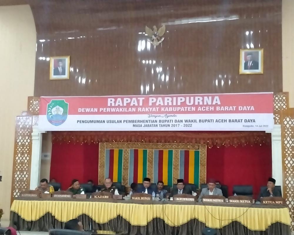 Usulan pemberhentian masa jabatan tersebut berlangsung dalam sidang paripurna yang digelar di Gedung DPRK Abdya, Kamis (14/7/2022).