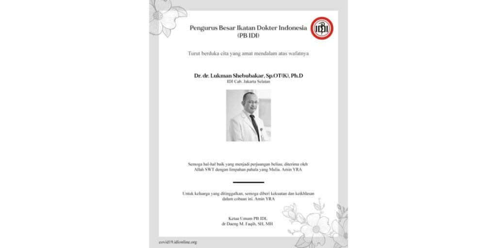 “Ya benar, dr Lukman yang berada di garis depan dalam penanganan Covid-19 di Indonesia dan wafat karena terpapar virus tersebut,” ujarnya.