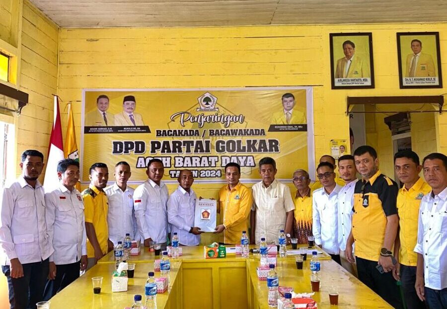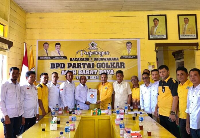 Berkas pendaftaran tersebut diterima langsung Ketua DPD II Partai Golkar Abdya Agusri Samhadi didampingi Korda Golkar Dapil 9 Aceh, H Syamsidik Ibrahim, Ketua Penjaringan Bacalon Bupati Abdya, Muhammad Iqbal, Kuantim Golkar Drs Darmansyah dan kader Golkar lainnya.