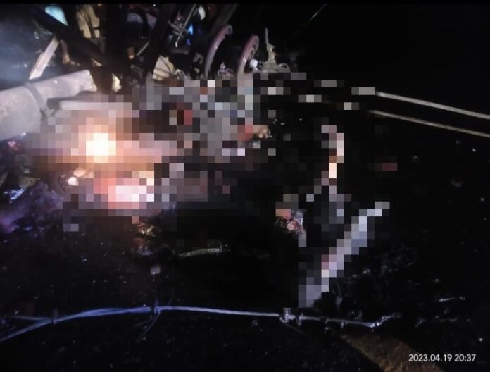 Akibatnya, dua pengendara motor yang belum diketahui identitasnya tewas tertimpa tiang listrik dilokasi kejadian dalam peristiwa tersebut.