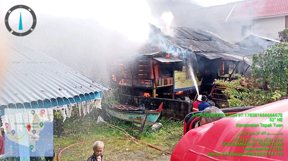 Analisaaceh.com, Tapaktuan | Dua unit rumah warga di Gampong Hilir, Kecamatan Tapaktuan, Kabupaten Aceh Selatan hangus terbakar, Jum’at (24/2/2023).
