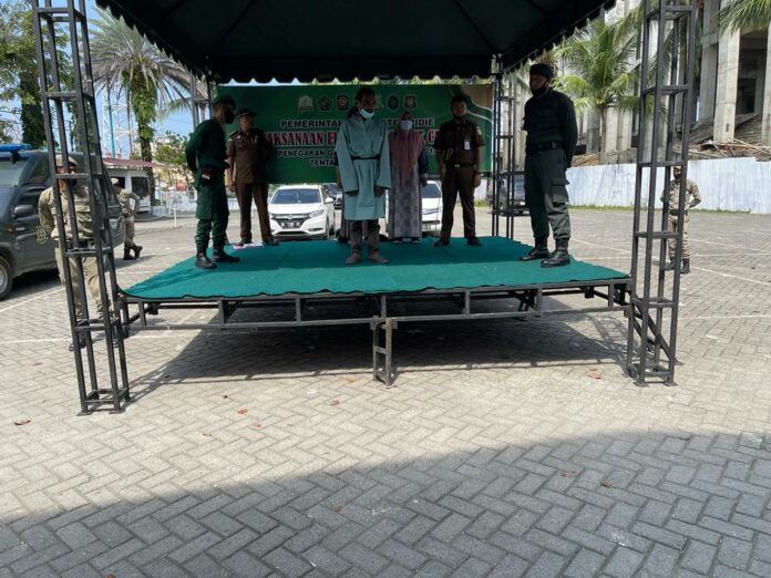 Analisaaceh.com, Sigli | Kejaksaan Negeri (Kejari) Pidie mengeksekusi dua orang terpidana perkara Maisir dengan hukuman cambuk depan umum di halaman Mesjid Al-Falah Kota Sigli, Kamis (27/1/2022) siang.