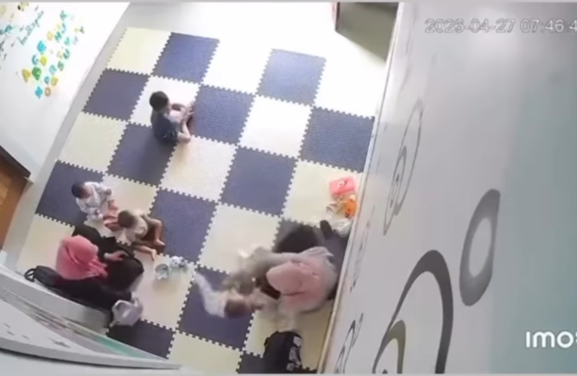 Peristiwa tersebut terjadi di dalam ruangan yang juga diisi oleh anak-anak lain. Dalam rekaman, beberapa anak tampak menyaksikan kejadian tersebut. Selain itu, terlihat pula pegawai lain di lokasi yang tidak melakukan intervensi.