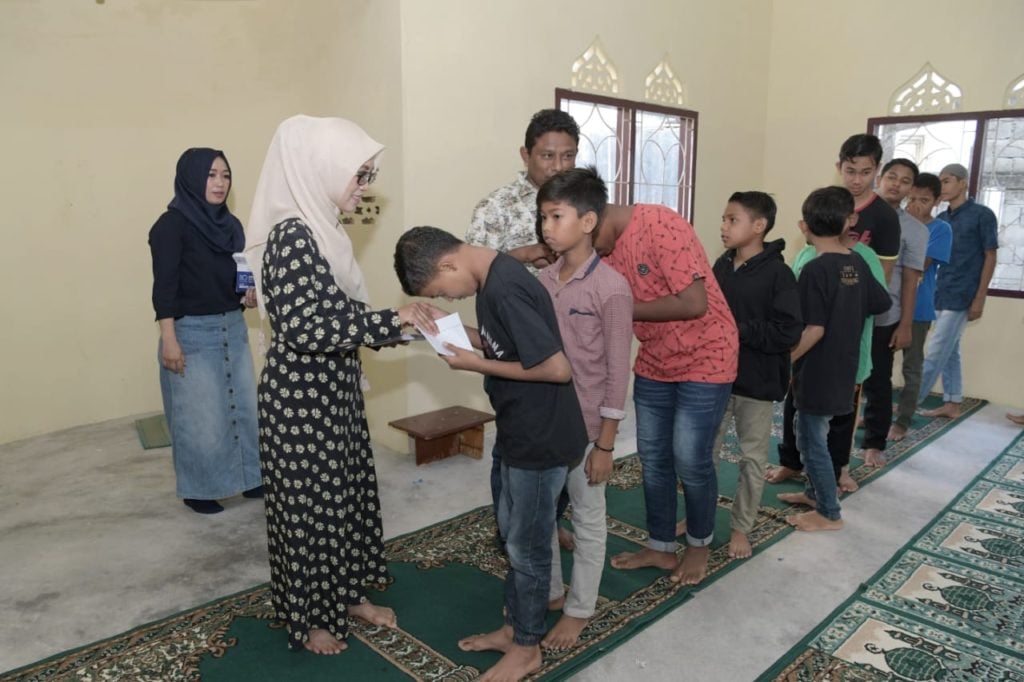 ANALISAACEH.COM, BANDA ACEH | Wakil Ketua Tim Penggerak PKK Aceh, Dyah Erti Idawati, menyerahkan santunan kepada 50 anak yatim dan kurang mampu yang mendiami Panti Asuhan Nirmala Banda Aceh. Santunan tersebut diserahkan Dyah di Musalla Panti asuhan setempat, Minggu, (19/1/2020).