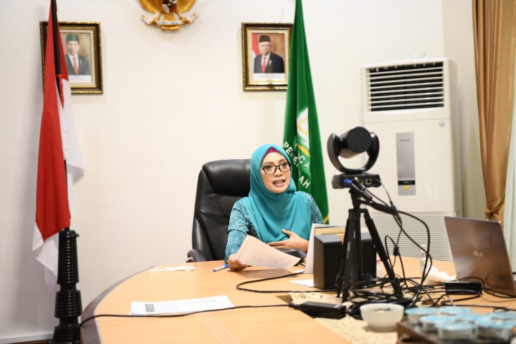 Ketua TP-PKK Aceh, Dr.Ir.Dyah Erti Idawati, MT., saat membuka Rapat Koordinasi Strategi Komunikasi Publik, secara virtual di Banda Aceh, Senin (7/6/2021).
