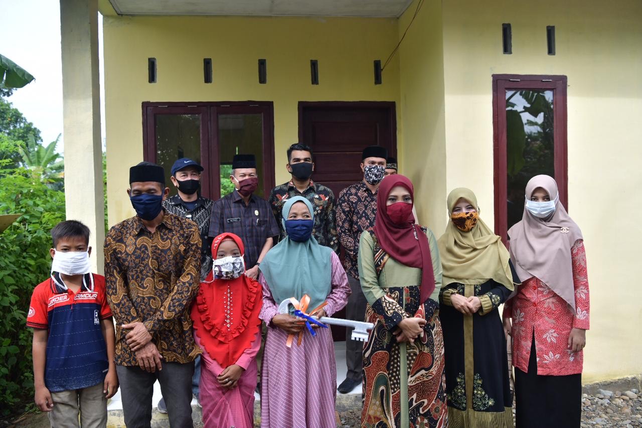 Analisaaceh.com, Kuala Simpang | Istri Pelaksana Tugas Gubernur Aceh, Dyah Erti Idawati, menyerahkan rumah bantuan Pemerintah Aceh untuk warga Tanjung Neraca, Kecamatan Manyak Payed, Kabupaten Aceh Tamiang, Jumat (5/6/2020).