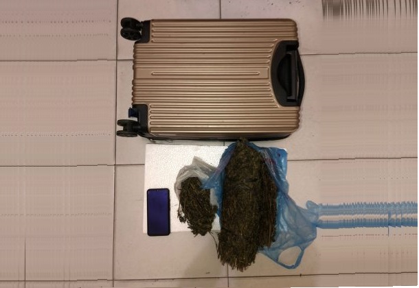 Saat dilakukan penggeledahan terhadap pelaku I, petugas menemukan ganja yang dibungkus dengan plastik seberat 1 kilogram yang disimpan di dalam koper warna coklat.