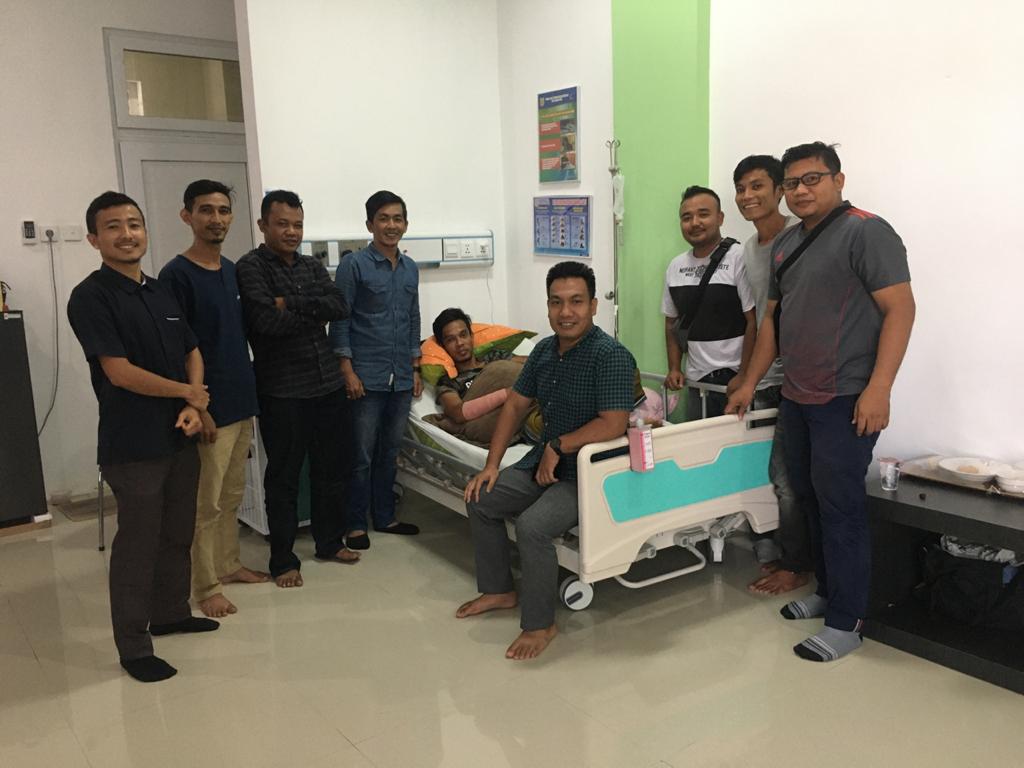Analisaaceh.com, Banda Aceh | Sekumpulan pemuda asal Kabupaten Aceh Selatan di Banda Aceh yang tergabung dalam Elemen Muda Aceh Selatan (EMAS) membesuk wing bek kiri Persiraja Agus Suhendra yang sedang dirawat di rumah sakit Meuraxa Kota Banda Aceh.