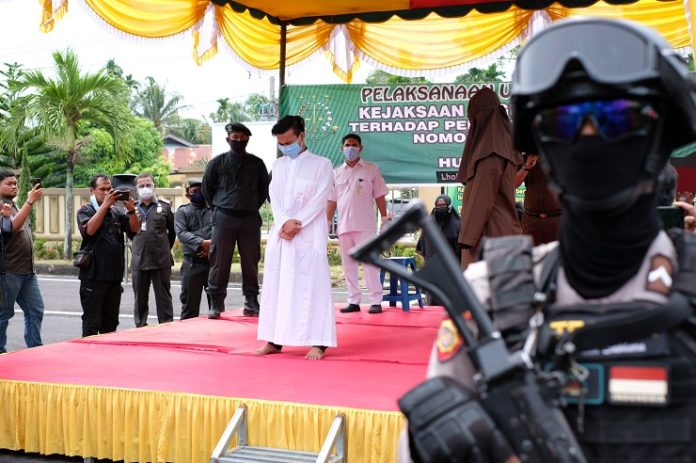 Analisaaceh.com, Lhoksukon | Empat pemuda terpidana pelecehan seksual menjalani eksekusi cambuk di kantor Kejaksaan Negeri (Kejari) Aceh Utara, Selasa (15/9/2020).