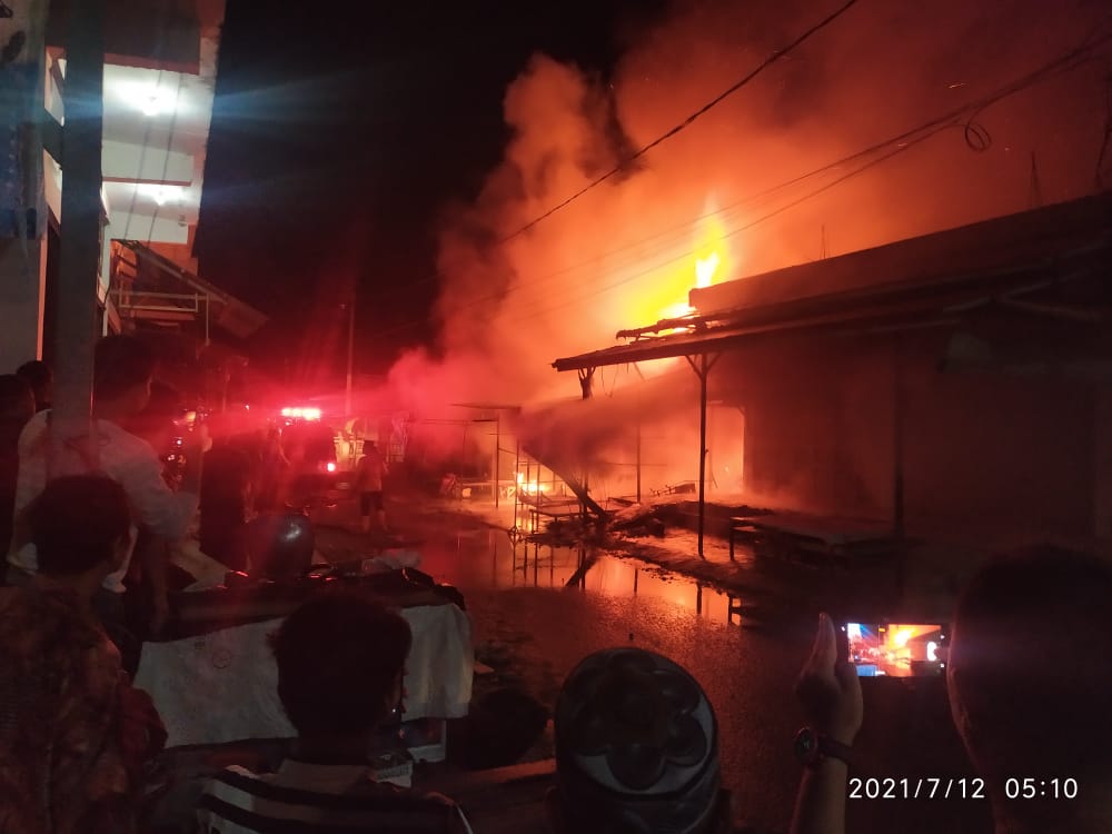 Peristiwa yang terjadi pada pukul 05.00 WIB tersebut menghanguskan toko masing-masing milik Salmiati, Nirmala Dewi, Ami dan milik Jariyah.