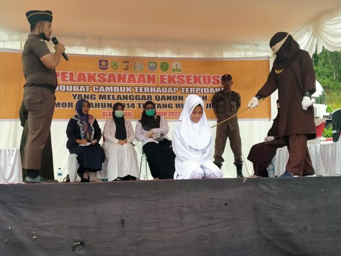 “Saat pelaksanaan hukuman cambuk dilakukan, terjadi beberapa jeda. Karena tiga dari empat terpidana meringis kesakitan. Bahkan satu orang terpidana Putri Rahayu sempat menangis,” tambah Heru.