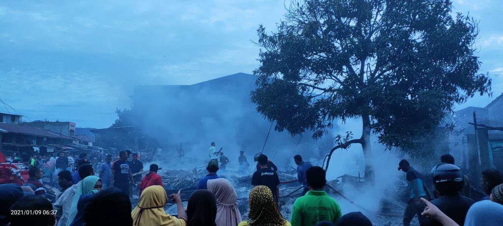 Analisaaceh.com, Aceh Selatan | Kebakaran hebat terjadi di Simpang Kedai Runding, Dusun Ujung Tanah, Gampong Kedai Runding Kecamatan Kluet Selatan, Kabupaten Aceh Selatan, Sabtu (9/1/2021) sekira pukul 4.15 WIB menghanguskan 4 rumah toko (Ruko) dan 1 Unit depot air.