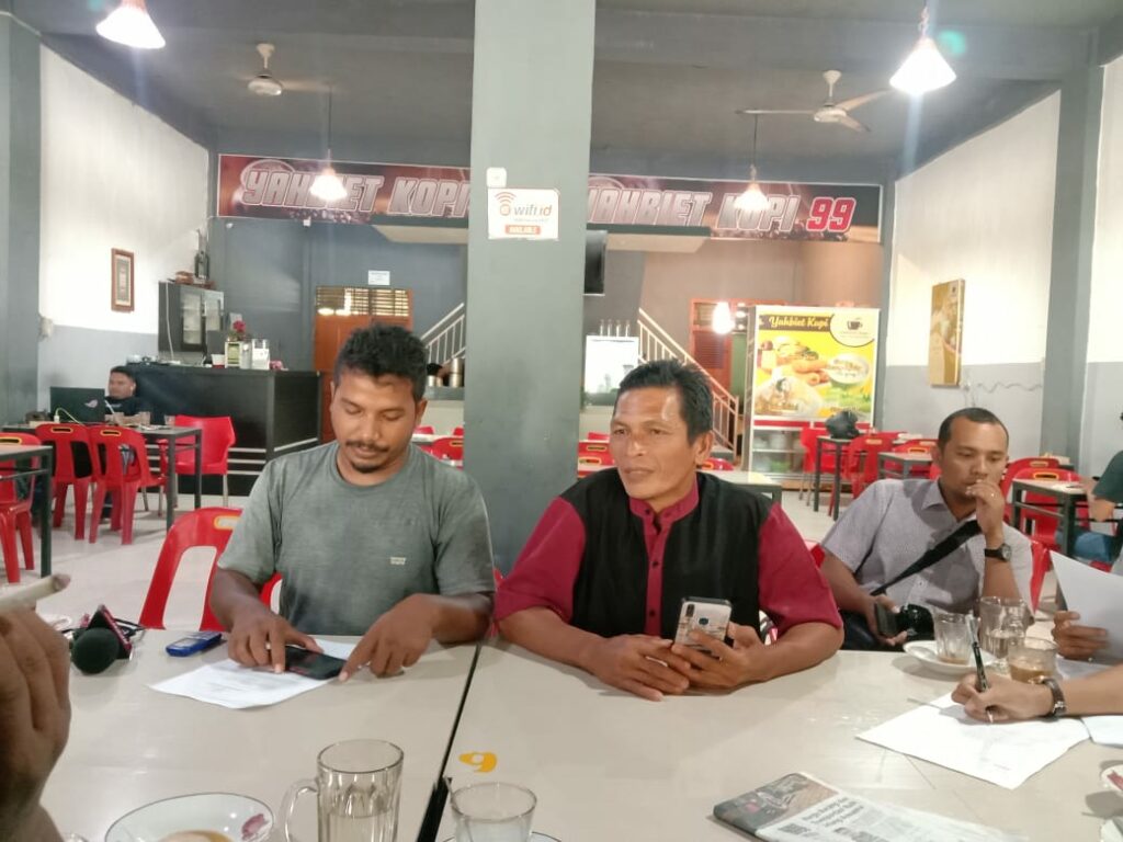 Korban perampasan dan penganiayaan oleh oknum TNI memberi keterangan kepada wartawan, Kamis (7/7/22). foto: Yuna/analisaaceh.com