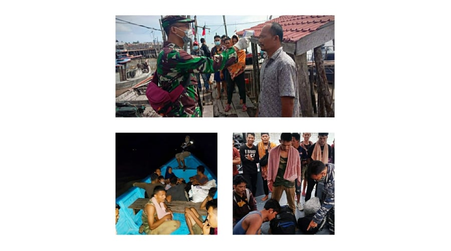 Analisaaceh.com, Medan | Tim Fleet One Quick Response (F1QR) Lanal Tanjung Balai Asahan Lantamal I, Koarmada I melakukan penangkapan kapal nelayan jenis sampan yang memuat 20 orang mekerja migran tanpa dokumen resmi (Ilegal) dari negara Malaysia di Tanjung Siapi-Api, Kabupaten Asahan, Sumatera Utara, Minggu (26/4/2020).