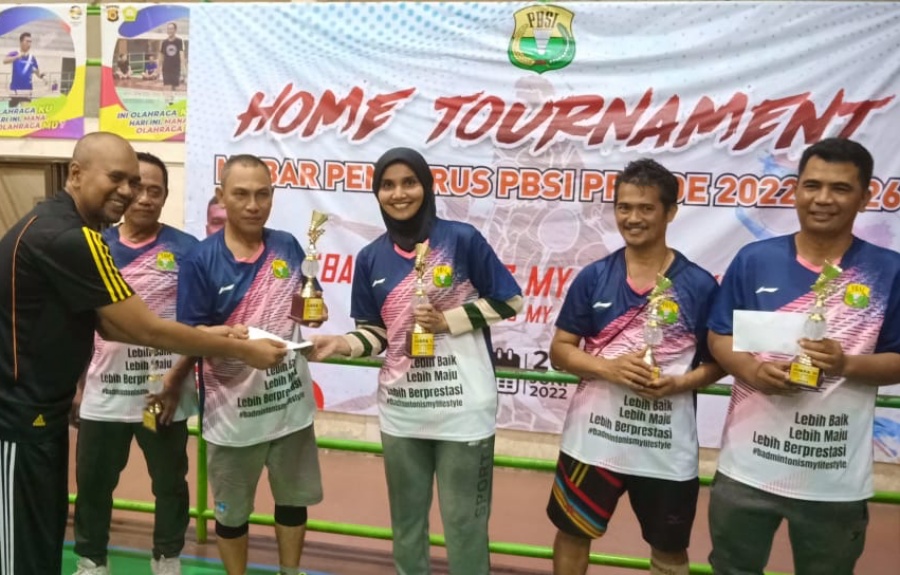 Analisaaceh.com, Banda Aceh | Ganda Apriani dan Mufdhillah, raih juara pertama pada even Home Tournament yang digelar oleh Persatuan Bulutangkis Indonesia (PBSI) Aceh, Minggu (26/6/2022), di Gedung Koni, di Banda Aceh.