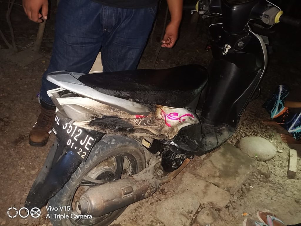 Analisaaceh.com, Aceh Besar | Diduga akibat api rokok, satu unit sepeda motor terbakar di Gampong Lam Cot, Kecamatan Darul Imarah, Aceh Besar, Sabtu (27/6/2020) pukul 21.20 WIB.
