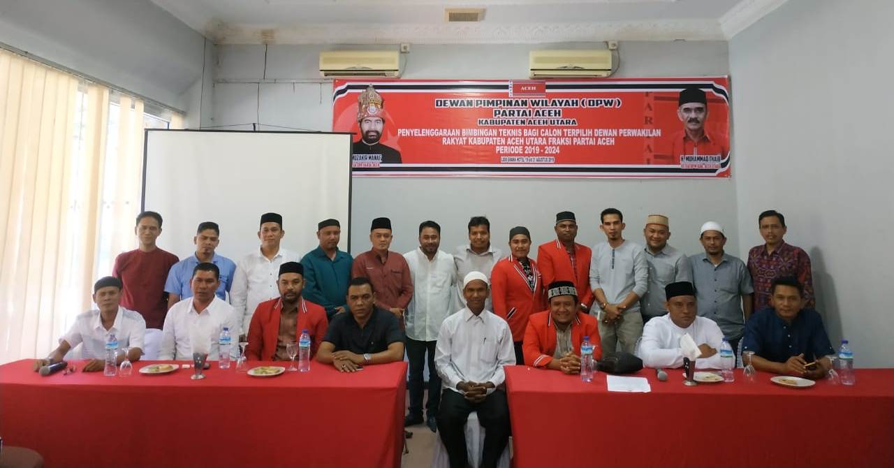Analisaaceh.com, LHOKSEUMAWE | Dewan Pengurus Wilayah Partai Aceh (DPW-PA) Kabupaten Aceh Utara menggelar bimbingan teknis bagi 14 anggota DPRK terpilih. Bimtek digelar untuk membekali anggota dewan terpilih agar seirama dalam garis perjuangan partai sebelum dilantik secara resmi sebagai anggota DPRK Aceh Utara periode 2019-2024.