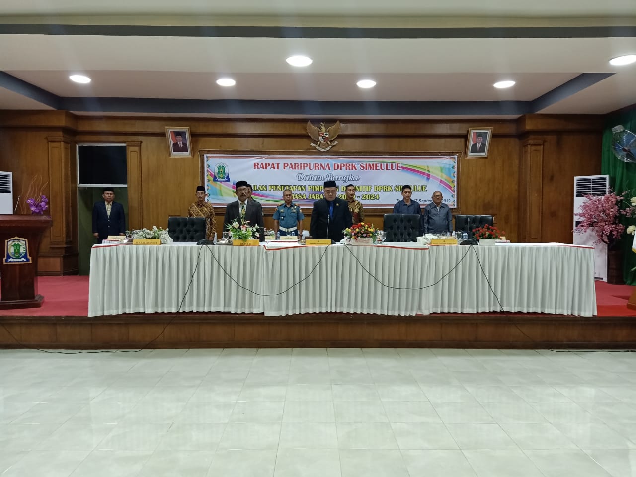 Hal tersebut sebagaimana yang dibacakan Sekretaris Dewan DPRK Simeulue, Drs. Astamudi atas Surat Keputusan No.23 Tahun 2019 tentang penetapan calon pimpinan DPRK Simeulue serta mengusulkan peresmian pengangkatan nama pimpinan Dewan Perwakilan Rakyat Kabupaten Simeulue masa jabatan 2019-2024.