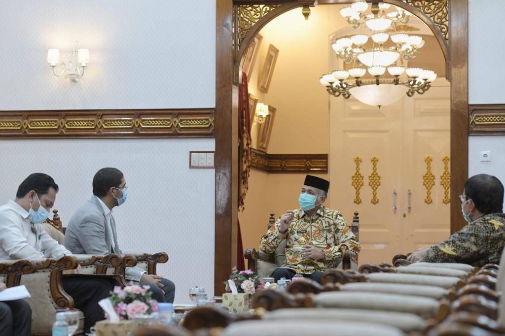 Gubernur Aceh, Nova Iriansyah menerima kunjungan Eksekutif Director Murban Energy perusahan dari Abu Dhabi, Amine Abid, di Pendopo Gubernur Aceh, Banda Aceh, Rabu 23/12/2020. Kunjungan tersebut membahas rencana investasi sektor pariwisata di Pulau Banyak Aceh Singkil.