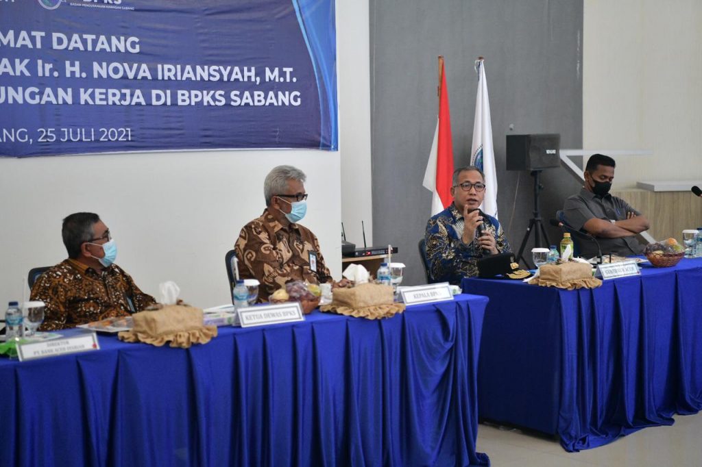 Di hadapan Gubernur dan Walikota Sabang, Iskandar melaporkan sejumlah pembangunan yang telah di lakukan BPKS di kawasan Sabang dan Pulo Aceh. Ia juga memaparkan sejumlah potensi dan tantangan dalam membangun dan mengembangkan kawasan tersebut.