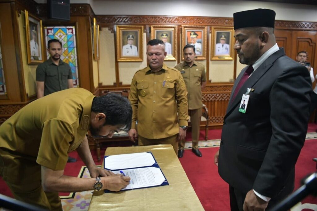 Analisaaceh.com, Banda Aceh | Gubernur Aceh, Muzakir Manaf (Mualem), resmi melantik Fadhil Ilyas sebagai Direktur Utama PT Bank Aceh Syariah untuk periode 2025–2029. Pelantikan berlangsung di Kantor Gubernur Aceh, Senin (8/9/2025).