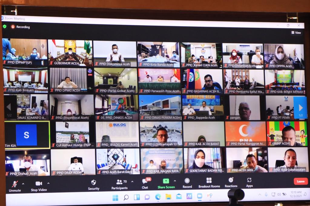 Penganugerahan keterbukaan informasi publik hasil evaluasi keterbukaan informasi tahu 2021 pada kualifikasi menuju informatif diraih oleh Dinas Lingkungan Hidup dan Kehutanan Aceh dalam kategori SKPA. Untuk kategori pemerintah kabupaten/kota, peringkat pertama diraih oleh Kabupaten Bener Meriah, kemudian Nagan Raya dan Bireuen.