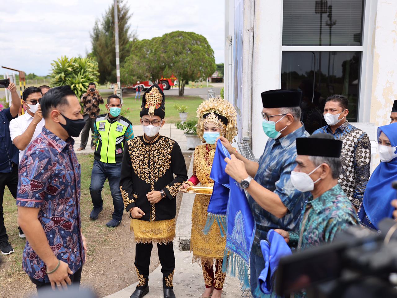 Analisaaceh.com, Lhoksukon | Gubernur Aceh Nova Iriansyah menyambut kedatangan Ketua Umum Partai Demokrat Agus Harimurti Yudhoyono (AHY) di Bandara Malikussaleh Aceh Utara, Sabtu 24 April 2021. AHY mendarat pukul 11.30 WIB bersama Sekjen Demokrat Teuku Riefky.