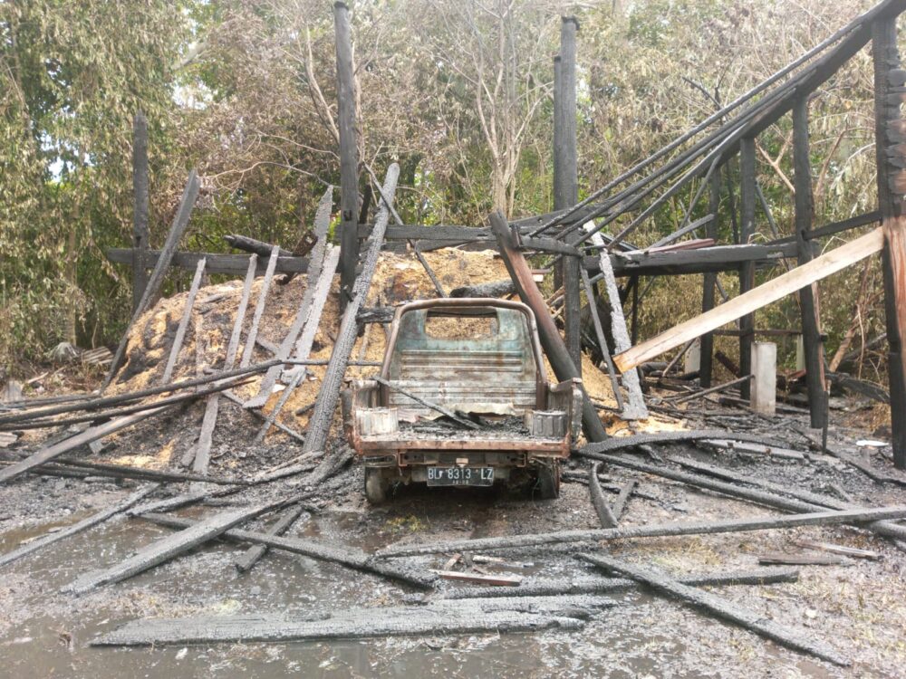 Dalam peristiwa tersebut, satu unit mobil Kijang Pick Up BL 8313 LZ ikut hangus dilalap api.