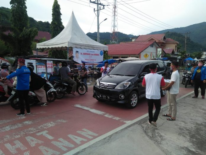 Analisaaceh.com, Tapaktuan | H. Mirwan. MS, SE, melalui relawan H. Mirwan Peduli Covid-19 gelar kegiatan bakti sosial dalam bentuk pembagian bantuan masker kain serta mie isntan kepada pengguna jalan di Kabupaten Aceh Selatan, dan Aceh Barat Daya, Senin (11/05/2020).