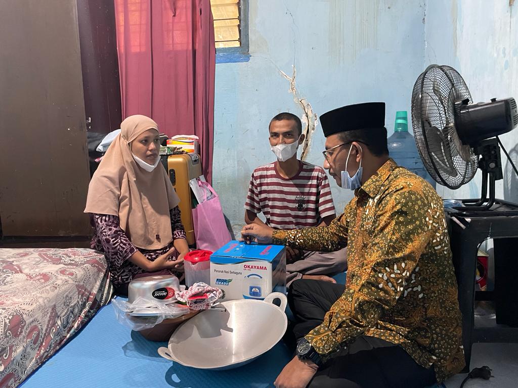 Mata Afriani sempat berkaca-kaca waktu menceritakan tentang derita suaminya kepada haji Uma sambil sesekali mengusap matanya, Apriani juga berterimakasih kepada semua pihak yang telah membantu suaminya.