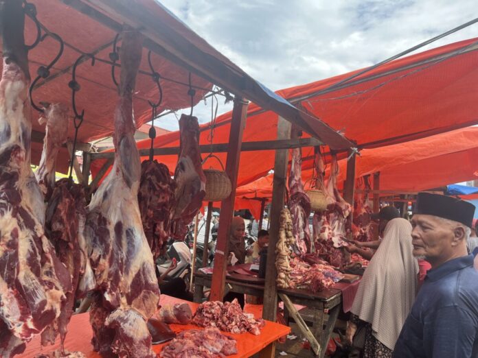 Analisaaceh.com, Banda Aceh | Harga daging sapi di Pasar Almahira, Lamdingin, Kota Banda Aceh diperkirakan akan naik sebesar Rp20 ribu per kilogram menjelang meugang Idul Adha.