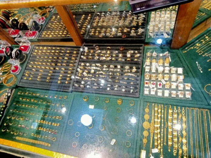 Perhisan emas yang dijual pada salah satu toko di jalan Tengku Chik Pante Kulu, Kecamatan Baiturrahman, Banda Aceh (Foto: Yuna/Analisaaceh.com)