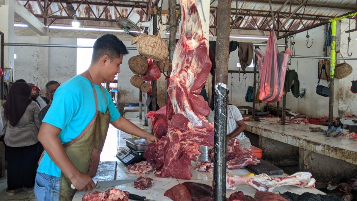 Sementara untuk daging, harga masih relatif stabil. Daging kualitas A dijual Rp150 ribu/kg, daging kualitas nomor dua Rp120–130 ribu/kg, dan daging untuk masakan sie reboh Rp150 ribu/kg. Bagian lain seperti tulang Rp60 ribu/kg, hati Rp80 ribu/kg, limpa Rp100 ribu/kg, tetelan Rp50 ribu/kg, dan usus serta babat Rp30–40 ribu/kg.