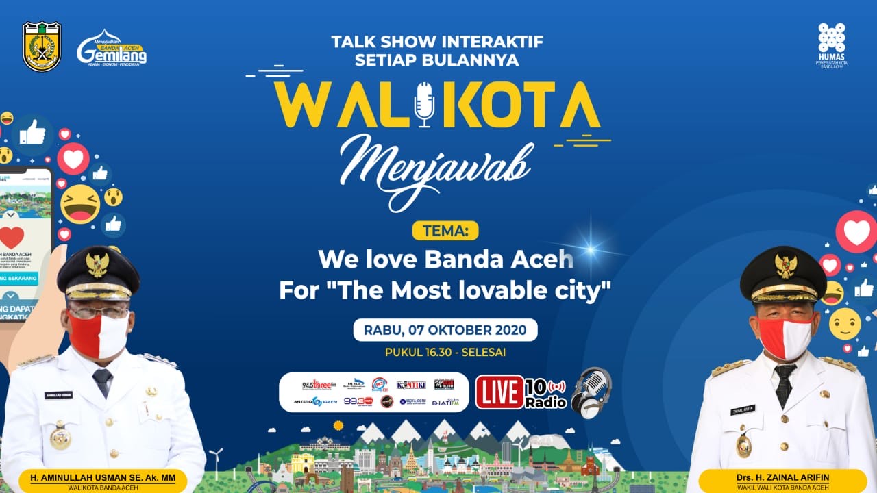 Analisaaceh.com, Banda Aceh | Program ‘Wali Kota Menjawab’ kembali mengudara lewat 10 stasiun radio di Banda Aceh hari ini, Rabu (7/10/2020). Dalam program edisi Oktober ini akan mengangkat tema ‘We Love Banda Aceh For The Most Lovable City’.