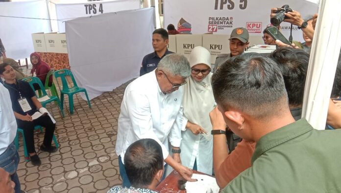 Analisaaceh.com, Banda Aceh | Calon Gubernur Bustami Hamzah, terlihat mendatangi Tempat Pemungutan Suara (TPS) Gampong Pineung, Kecamatan Syiah Kuala, Kota Banda Aceh, pada Rabu (27/11/2024) pukul 10.07 WIB.