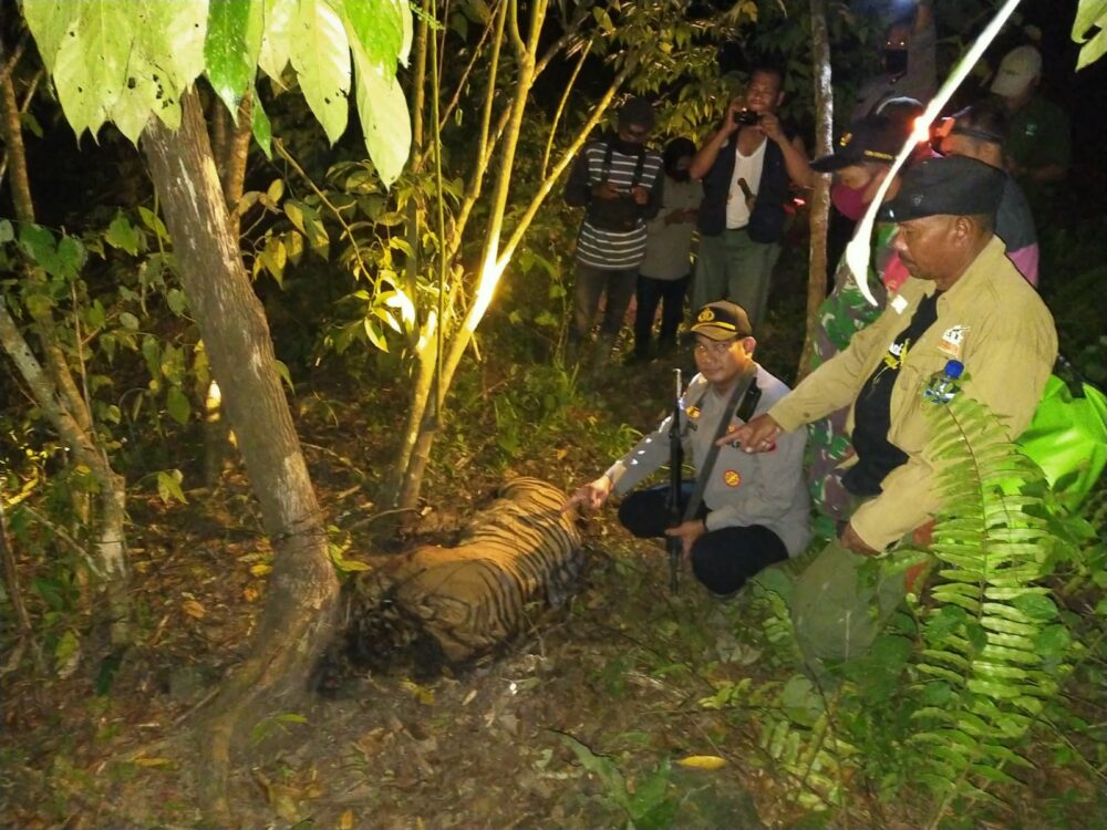 “Ditemukan sekitar 500 meter dari dua ekor yang pertama kali ditemukan. Jadi jumlah harimau yang mati menjadi tiga ekor,” kata Kapolsek.