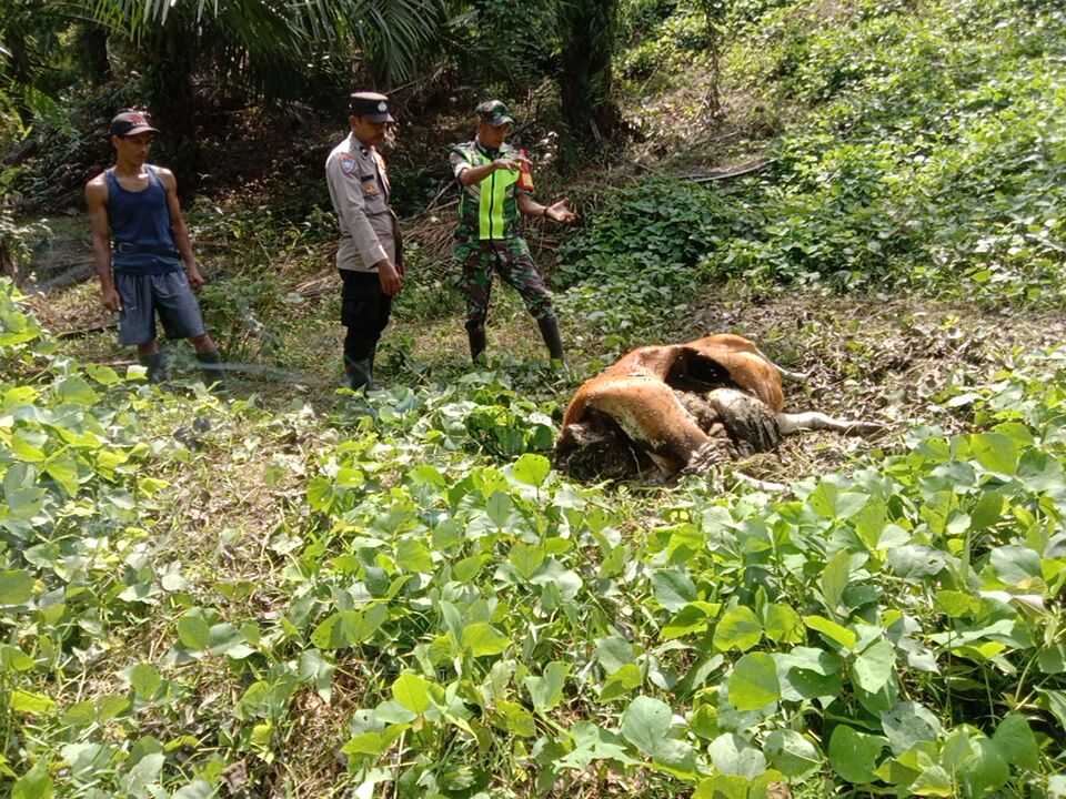 Seekor lembu ditemukan mati usai diterkam harimau Sumatera di Kabupaten Aceh Timur. Foto (ist).