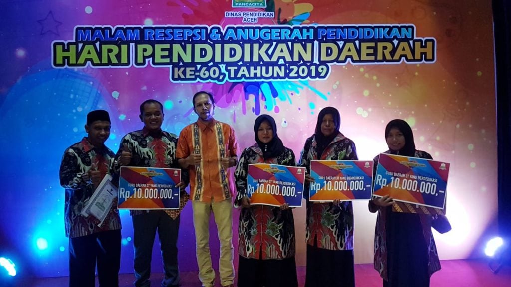 Analisaaceh.com, Banda Aceh | Hariya Haldin, S.Pd, guru SMAN Kota Bahagia Kabupaten Aceh Selatan merupakan salah satu guru yang meraih Anugerah Guru daerah 3T yang Berdedikasi pada peringatan Hari Pendidikan Daerah (Hardikda) ke 60 Provinsi Aceh tahun 2019, Selasa (8/10/2019).
