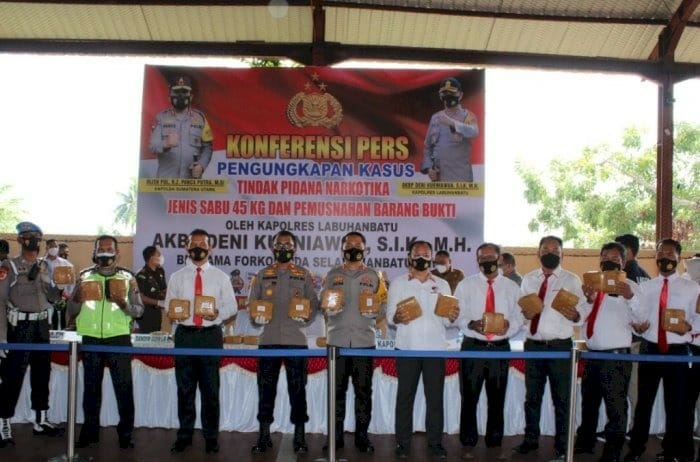 Analisaaceh.com, Medan | Polres Labuhanbatu, Sumatera Utara berhasil mengungkap dan mengamankan narkotika jenis sabu sebanyak 45 Kg jaringan Aceh – Riau.