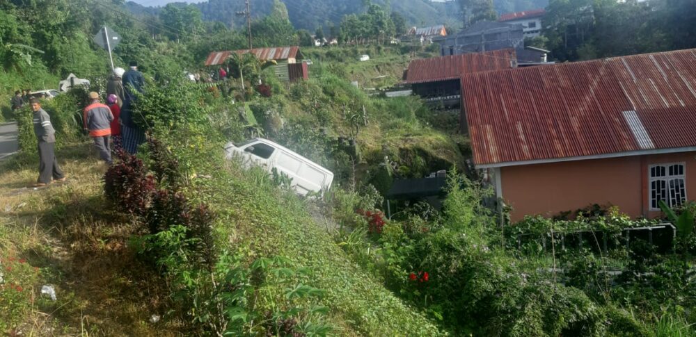 “Mobil menabrak vas bunga milik masyarakat dan terperosok ke dalam jurang sedalam 5 meter hampir dekat dengan rumah warga yang ada di bawah,” jelas Ipda Kemat.