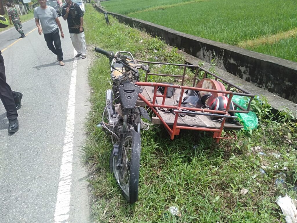 “Sedangkan becak barang mengalami rusak berat dan mobar Mitsubishi Colt mengalami kerusakan ringan serta kerugian material mencapai Rp5 juta,” ujarnya.