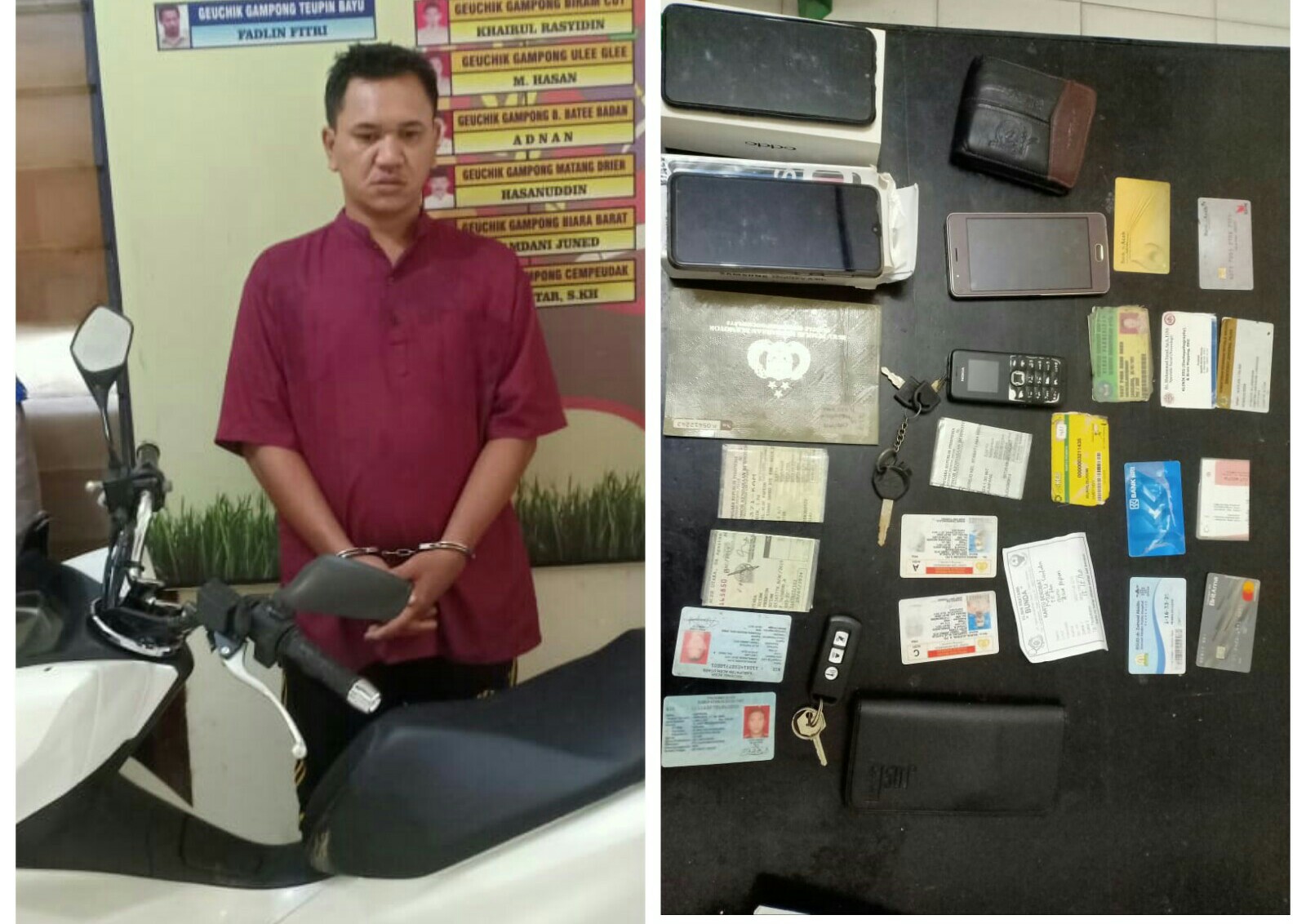 Pria itu ditangkap pihak Polsek Tanah Jambo Aye Polres Aceh Utara dibantu personel Polsek setempat, sebelumnya dia dilaporkan telah melakukan penipuan disertai penggelapan atau pencurian terhadap Muklisuddin (49) seorang guru warga Gampong Alue Papeun Kecamatan Tanah Jambo Aye, Aceh Utara.