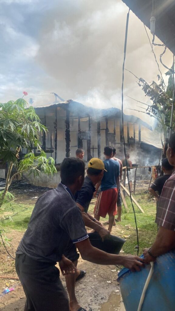 i kebakaran rumah di Kampung Sungai Kuruk 3 Kecamatan Seruway Kabupaten Aceh Tamiang dievakuasi warga, Senin (29/1/2024). Foto (ist).