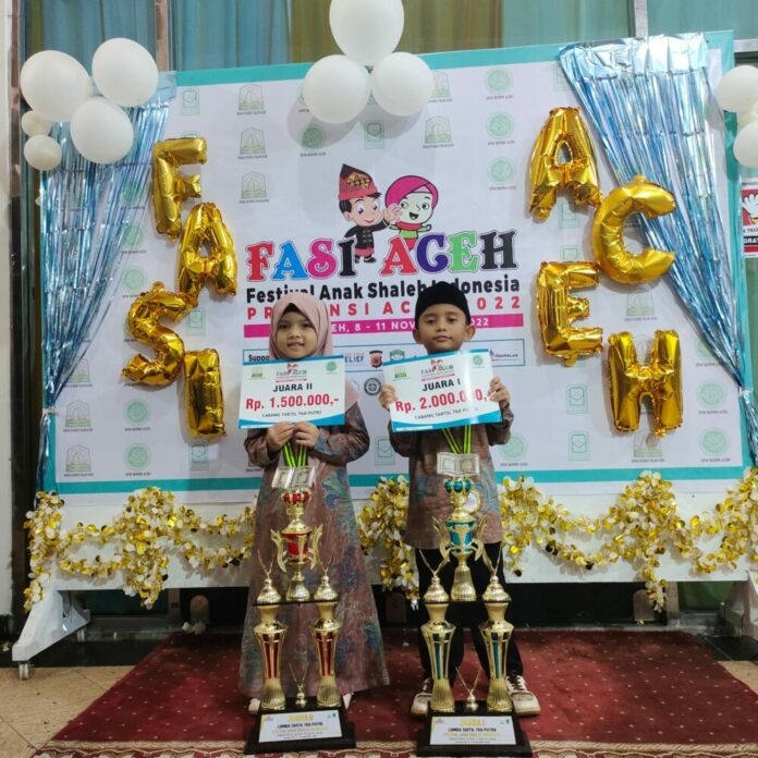 Analisaaceh.com, Banda Aceh | Iffat Assyarif berhasil meraih juara I Festival Anak Shaleh Indonesia (FASI) tingkat Provinsi Aceh tahun 2022, cabang MTQ Tartil kategori TKA.