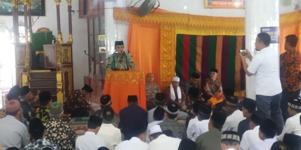 Menag Fachrul Razi tiba di Mesjid Al-Qalifah Ibrahim di Keude Matangkuli Sabtu sore (22/2/20) sekira pukul 15:30 WIB. Menag disambut oleh Kapolres Aceh Utara AKBP Ian Rizkian Milyardin bersama ulama dan tokoh masyarakat setempat.