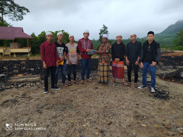 Analisaaceh.com, Tapaktuan | Ikatan Mahasiswa Pelajar Gelumbuk (IMPG) Kecamatan Kluet Selatan dan Komunitas Motor Independent Kluet Raya (MIKRA) menyerahkan bantuan kepada korban kebakaran Dayah Syaikhuna di Gampong Kapa Seusak, Kecamatan Trumon Timur, Aceh Selatan, Jum’at (30/4/2020).