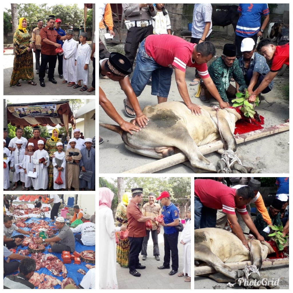ANALISAACEH.com | Medan – Indahnya berbagi bersama di hari raya Idul Adha 1440 H, Jajaran Polres Pelabuhan Belawan Menyembelih hewan qurban 6 ekor lembu dan 2 ekor kambing di halaman belakang Mapolres Pelabuhan Belawan, Minggu (11/8/2019).